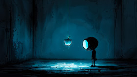 Unknown character reaches for the apple that is the source of blue energy superpowers